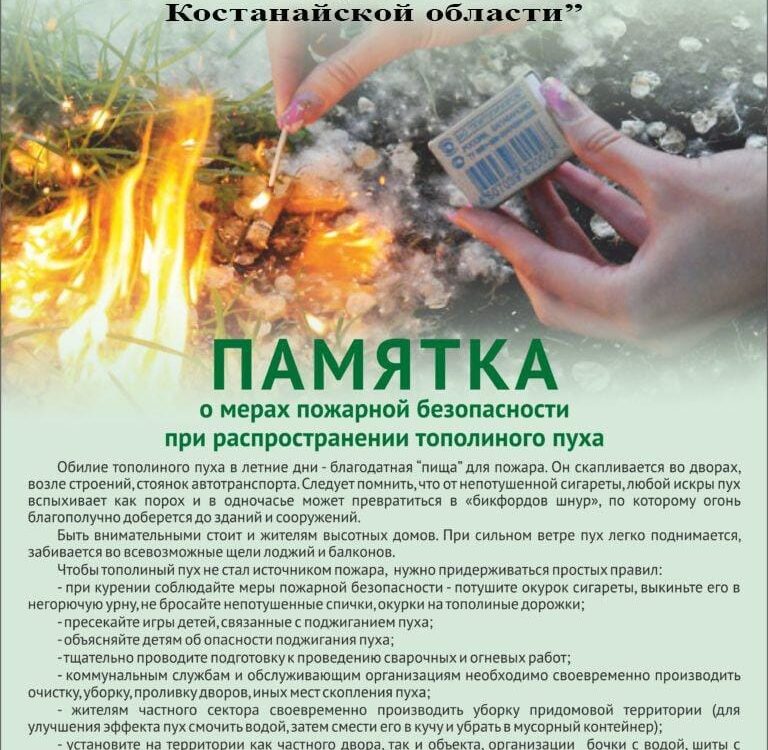 С приходом лета на земле появился «летний снег» — тополиный пух. Этот легковоспламеняющийся природный материал скапливается во дворах организаций образования, вдоль труб теплотрасс, возле строений, стоянок […]