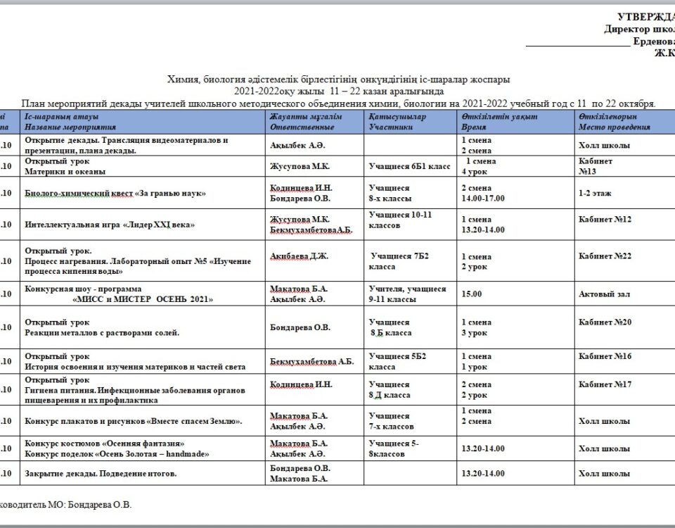 11октября началась декада биологии и химии. Запланированы мероприятия обучающего характера — открытые уроки по предметам естествознание, биология и химия. 12 октября успешно прошел урок естествознания в […]