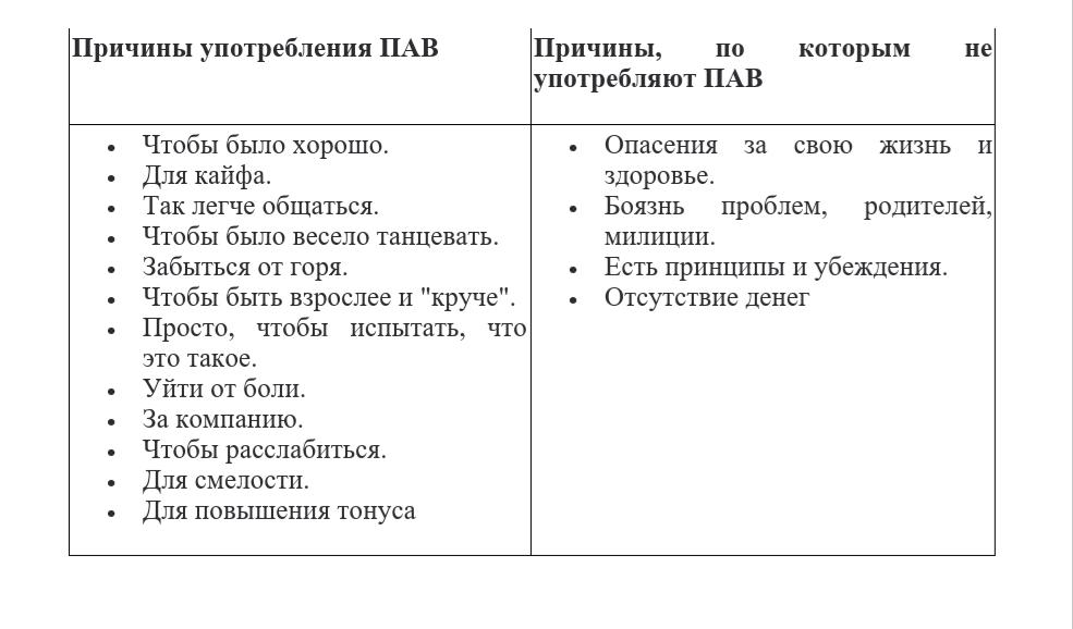 Понятно, что употребление ПАВ — сложное и противоречивое явление современной массовой культуры. С одной стороны, употребление ПАВ поощряется рекламой в коммерческих целях. С другой стороны, употребление ПАВ является риском возникновения сердечно-сосудистых, онкологических и других заболеваний, а также это причина несчастных случаев и преступлений. Для взрослых людей курение и употребление алкоголя – их личное дело, в том случае, если это не приносит вред окружающим.