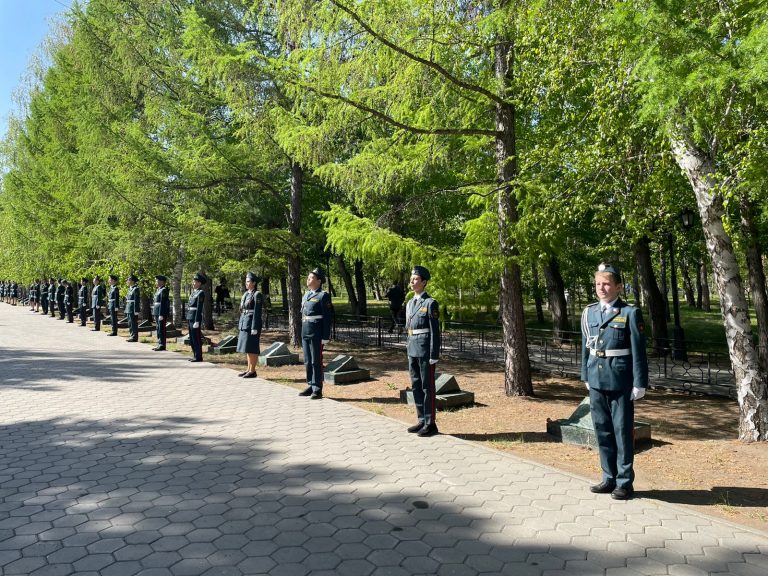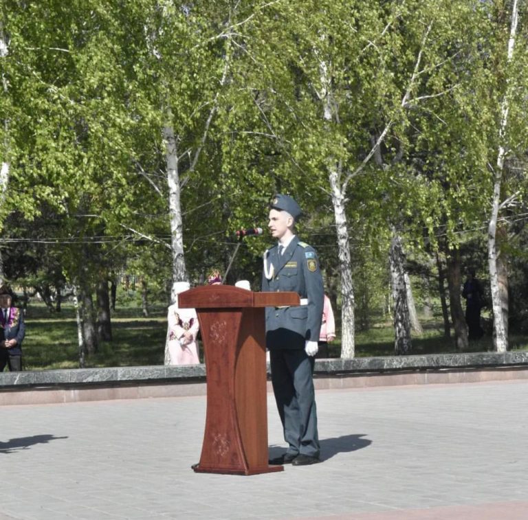 А кадетам Брынскому Никите, Тусову Максату и Алиеву Науану выпала честь публично выступить со словами благодарности к ветеранам Великой Отечественной войны, поблагодарить их за чистое небо и за подвиг во имя жизни на земле.