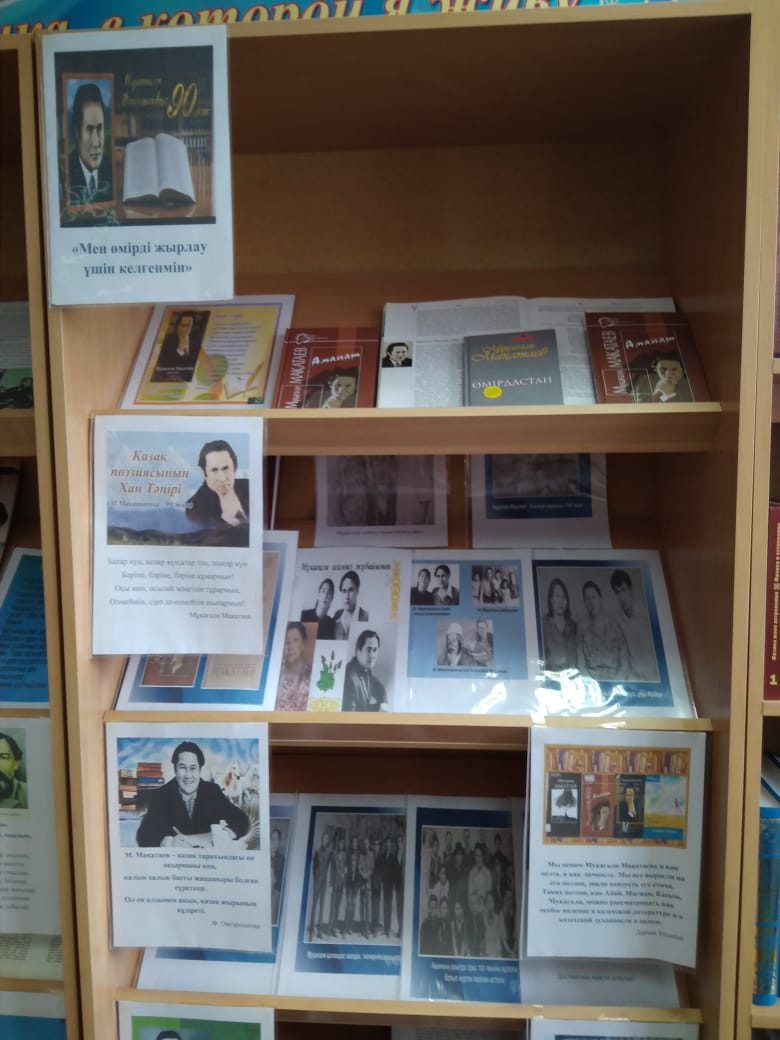 9 ақпанда ақын және аудармашы Мұқағали Мақатаев 90 жасқа толды. Оның мерейтойына орай «Мен өмірді жырлау үшін келгенмін» атты кітап көрмесі және «Қазақ поэзиясының Хан Тәңірі» виртуалды көрмесі өтті.Көрмеге Мұқағали Мақатаевтың шығармашылығы, өлеңдер жинақтары, мерзімді басылымдардан алынған мақалалар қойылған.Мұқағали Мақатаев (9 ақпан 1931 – 5 наурыз 1975) – қазақтың көрнекті ақыны. Оған «Аппатата» поэмасы даңқ әкелді. «Сәлем, достар», «Қарлығашым», «Менің жүрегім», «Өмір жылуы», «Жүрек лүпілі», «Шолпан» және басқалар поэзиялық жинақтары қазақтың ұлттық поэзиясының алтын қорына енді.