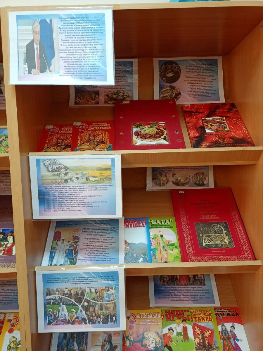 Шығыс күнтізбесі бойынша Наурыз – көктемгі жаңару мерекесі, бұл көктемгі күн мен түн теңелген күнмен сәйкес келеді. Қазақстанда Наурыз 21-23 наурызда шығыс дәстүрлеріне сәйкес тойланады.Бұл мереке қазақтар үшін көктемгі жаңарудың, махаббаттың, құнарлылық пен достықтың салтанат құрғанының символы. Ертеде, Наурыз келер алдында адамдар үйлерін және шаруашылығын ретке келтіріп, мереке құрметіне ағаштар мен гүлдер отырғызды. Егер Наурыз таза үйге жақсы иесіне кірсе, ауру, сәтсіздік, қиындық оны айналып өтеді деп сенген. Қазақ халқы Наурыз мейрамын ерекше бағалайды. Бұл күні көпшілік қазақтың ұлттық киімдерін киеді, қалалар мен ауылдарда түрлі іс-шаралар өткізіледі, дәстүрлі Наурыз көже тағамдары дайындалады.«Наурыз» «көктемнің тууы» дегенді білдіреді. Бұл Шығыс халықтарының арасындағы ең маңызды және ежелгі фестиваль. Қысқаша айтқанда, бұл ежелгі Шығыс күнтізбесі бойынша Жаңа жыл. Оның тағы бір атауы бар, «Ұлыс Күні» – «Жаңа жылдың алғашқы күні» немесе «Ұлысты Күні» – «Халықтың ұлы күні». Наурыз мейрамын жомарт тойлау сіздің үйіңізге жыл бойына молшылық пен сәттілік әкеледі деп сенеді. Кітапханамызда «Көктемнің туылуымен» атты кітап көрмесі дайындалды. Көрмеде «Наурыз», «Наурыз көже», «Қазақтың даркан дастарқаны», «Қазақтық киіз үй»,«Қазақстан Қызыл кітабы беттерінен», «Қазақтың ұлттық киімдері», «Қазақ халқының тұрмысы мен мәдениеті», «Қазақтың ұлттық тағамдары» және т.б. 5-7 сынып оқушылары Наурыз мейрамдары туралы көп білді.