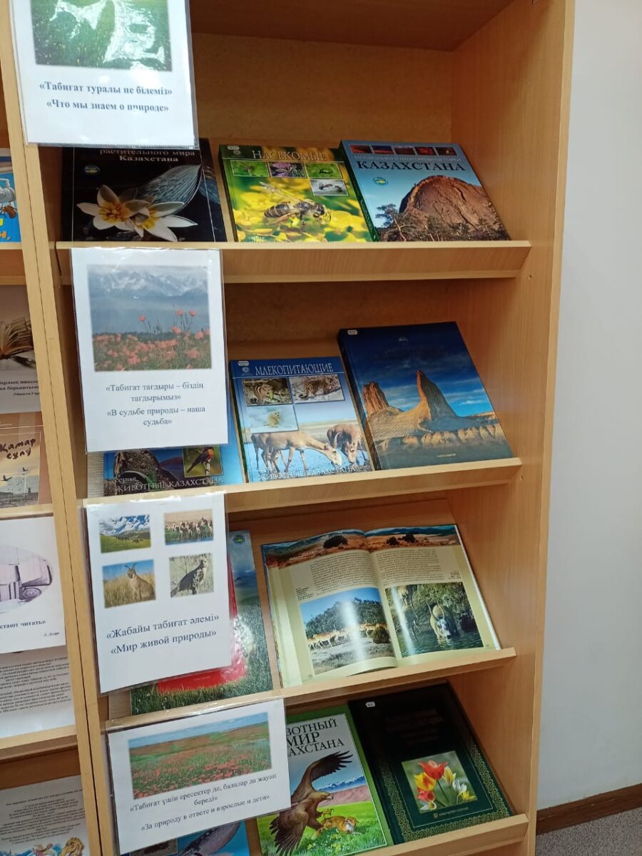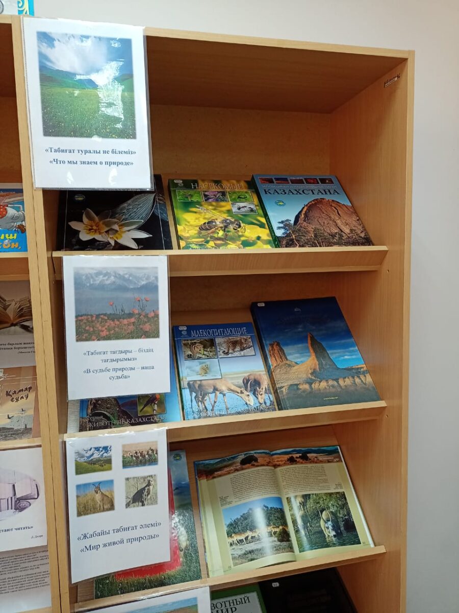 26-30 сәуір аралығында «Біз болашаққа жауаптымыз» экологиялық білім беру апталығы аясында 5-11 сыныптарға арналған «Табиғат туралы не білеміз» атты кітап көрмесі дайындалды. Кітап көрмесінде 11 кітап бар.
