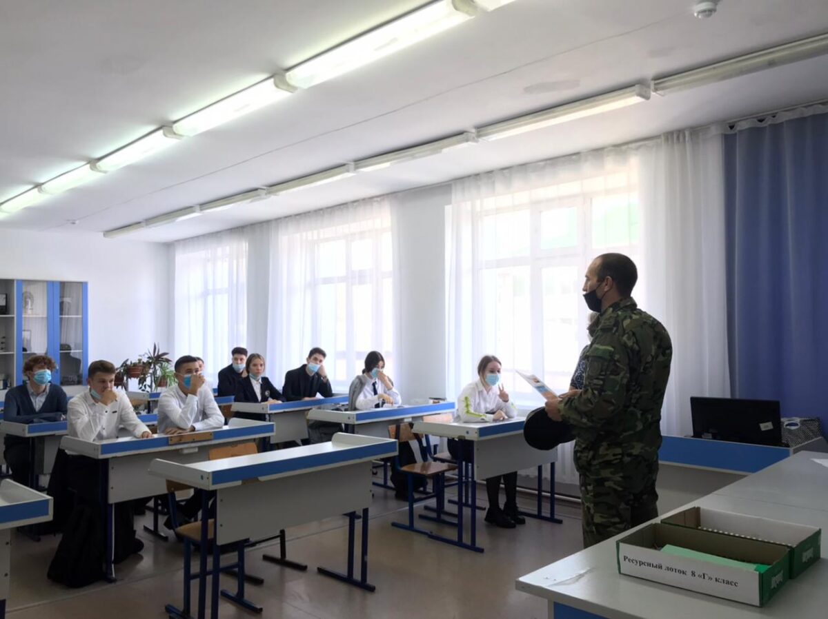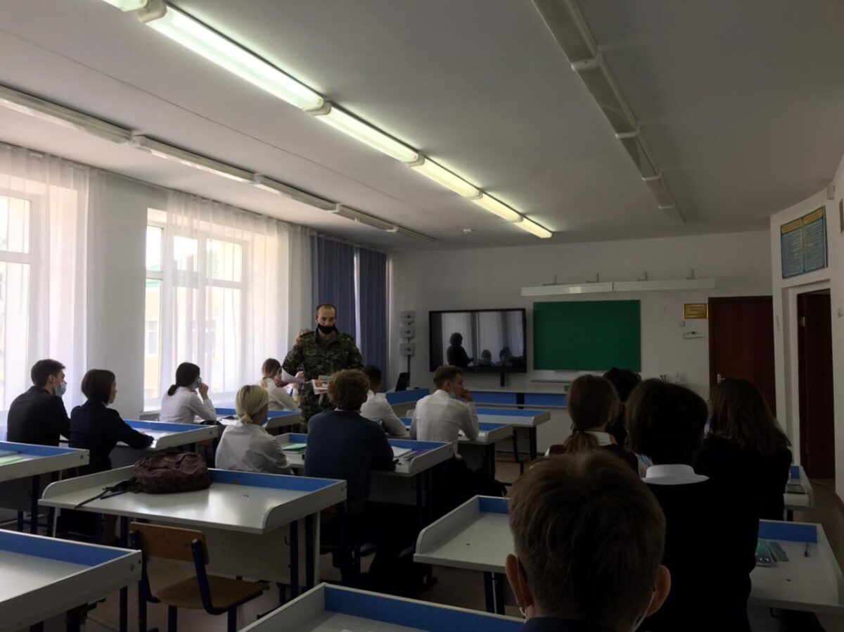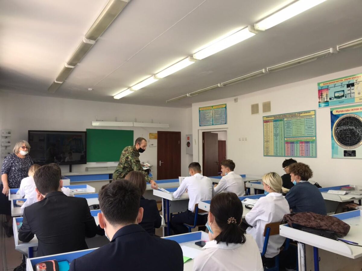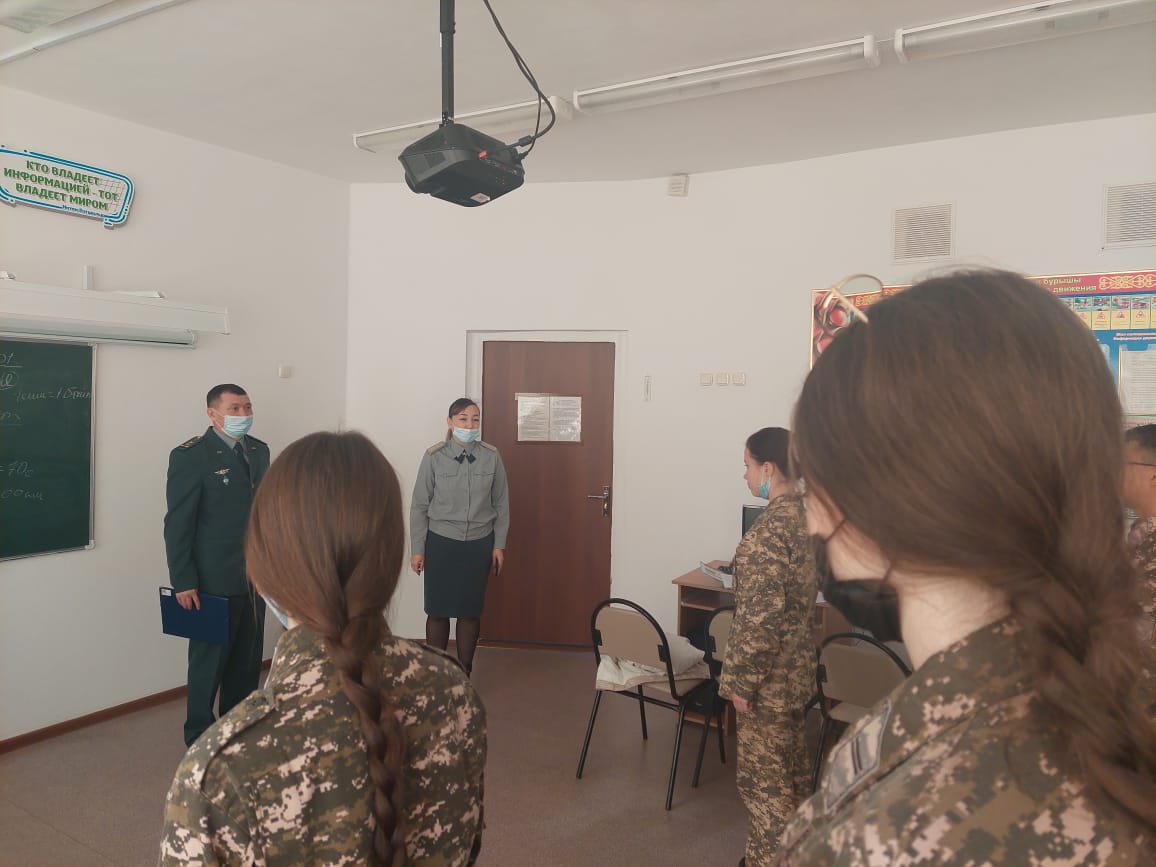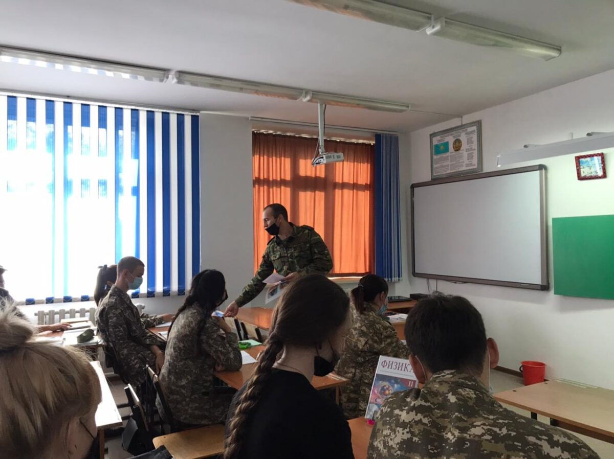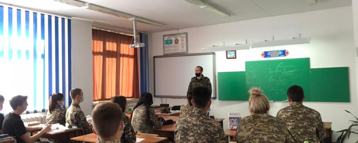 Кәсіби бағдар беру шеңберінде шекара бөлімінің өкілдері капитан А.Б. Абдиевпен және сержант Ж. К. Амановамен кездесу өтті. Олар академияға оқуға түсу, тұру және оқу шарттары туралы айтып берді.