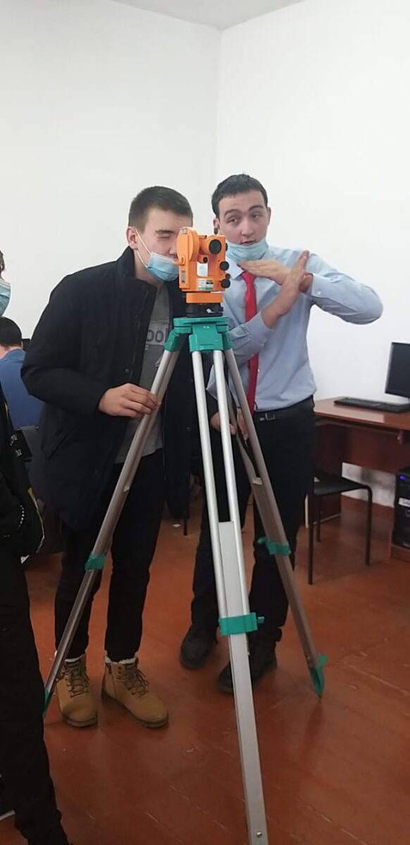«Геодезия және Картография» мамандығы бұл мамандық автомобиль жолдарын салу және пайдалану кезінде сұранысқа ие. Балалар теодолит деп аталатын құрылғымен танысты. Осы аспаппен жұмыс істеу алдында оқушылармен қауіпсіздік техникасы бойынша нұсқаулық өткізілді, балаларға көру қабілетін сақтау үшін аспаптың көмегімен не қарауға болмайтыны туралы ескертілді. Құрылғының көмегімен балалар бұрыштар мен заттар арасындағы қашықтықты анықтады.