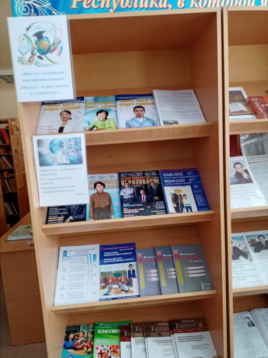 “Бауыржан Момышұлы атындағы №5 жалпы білім беретін мектепте” кітапханада кітап көрмелері ұйымдастырылды. “Мектеп: нәтижеден шығармашылыққа” атты кітап көрмесінде ұсынылған басылымдар білім беруді дамытудың мақсаттарын, міндеттерін, перспективаларын, педагогикалық технологияларды жетілдіру жолдарын ашады, педагогтың кәсіби өсуіне және жеке дамуына көмектеседі.