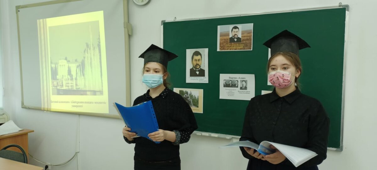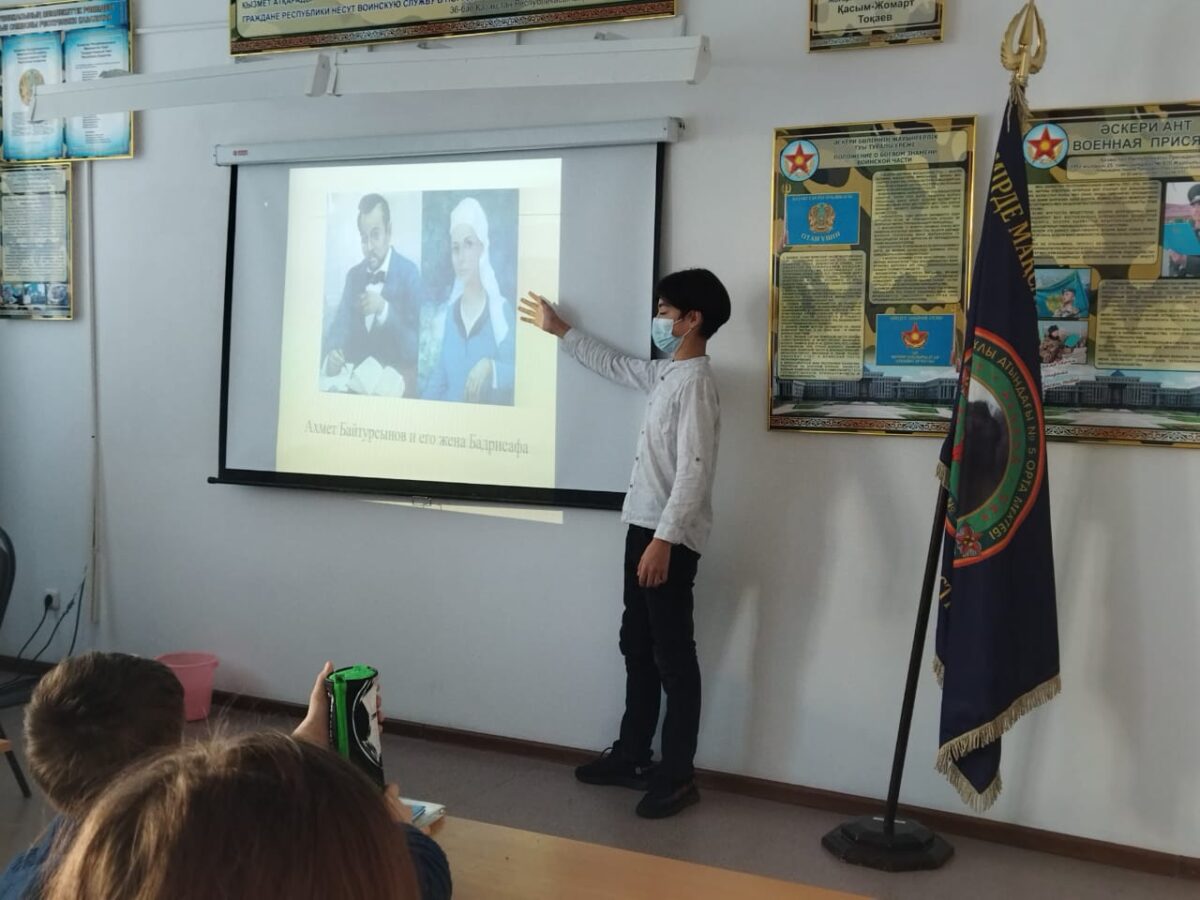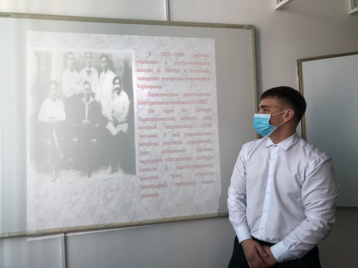 Біздің мектепте Ахмет Байтұрсыновтың 150 жылдығына арналған «Ұлт мұғалімі» тақырыбында сынып сағаттары өтті. Мемлекет және қоғам қайраткері, «Алаш» партиясының мүшесі, ағартушы, ғалым, түркітанушы, ақын және аудармашы – Ахмет Байтұрсынов.