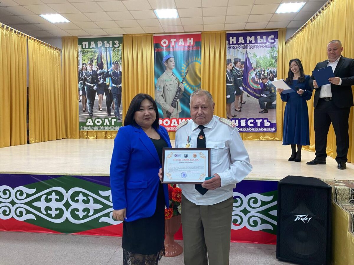 Салтанатта 2001 жылы Қостанай қаласының №5 мектебінде алғашқы кадет сыныптарын құрған, міне, 20 жыл бойы кадеттерді қазақстандық патриотизм рухында тәрбиелеп, оқытып жүрген В.А. Русиновты бір минут үнсіздікпен еске алды.