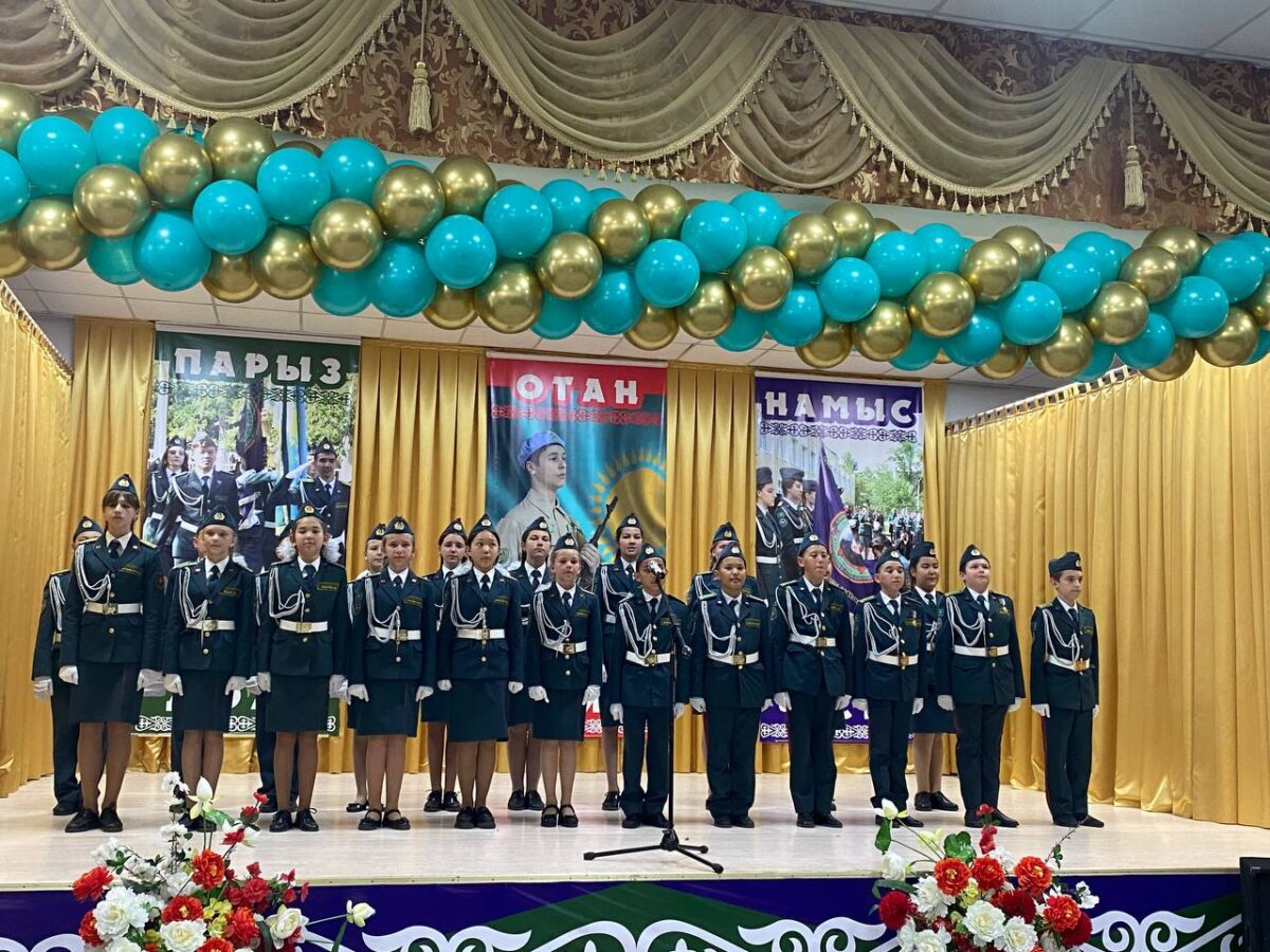 Мектеп жанындағы плацта кадет қозғалысының 20 жылдығын мерекелеу басталды, онда 5-тен 11-сыныпқа дейінгі кадеттер ҚР туы мен мектептің кадет қозғалысы туының астында салтанатты саппен өтті. Саптық дайындық пен жауынгерлік қаруды шебер меңгерудің түрлі тәсілдері көрсетілді.