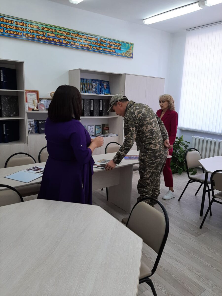 Бүгін ҚР Қорғаныс министрлігінің өкілі Дәулет Нариманұлы Бейсеков Бауыржан Момышұлының № 5 жалпы білім беретін мектебіне келді.