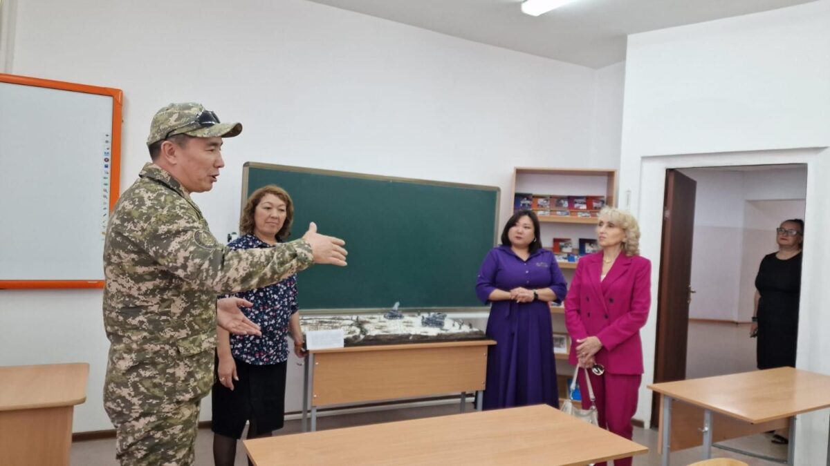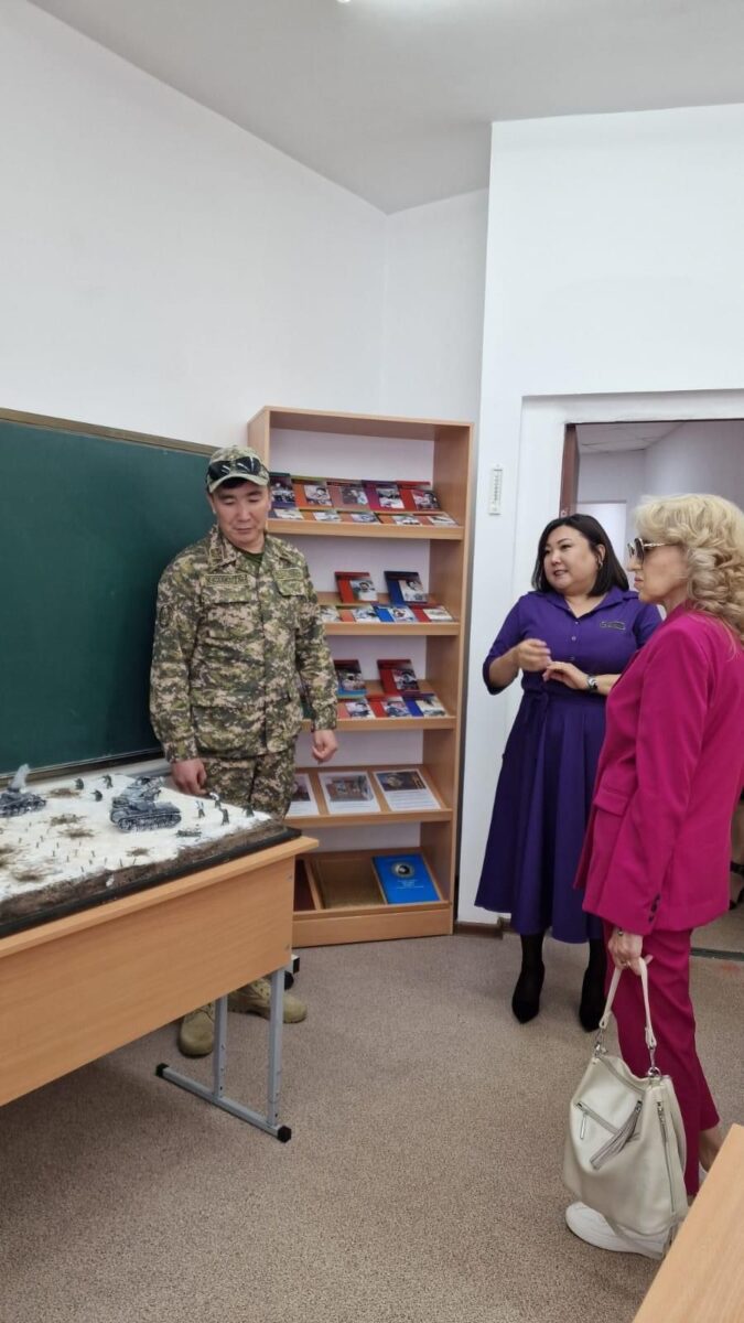 Мектеп директоры Ерденова Жанар Козыбаевна қонақтарға қызықты экскурсия барысында Бауыржан Момышұлының мектеп мемориалдық мұражай-кабинетін көрсетті, мұражай-кабинеттің құрылуы туралы мәлімдеді, “Жас Сарбаз” кабинеті мен Stem-зертханасын көрсетті. Музей-кабинетімен танысу кезінде подполковник Бейсеков Д.Н. Бауыржан Момышұлының өмірбаянының негізгі сәттері, оның марапаттары, жауынгерлік жолы баяндалған, мектеп озаттары мен белседілері отыратын “Батырдың партасын” жасау жөнінде қызықты ұсыныс жасады.