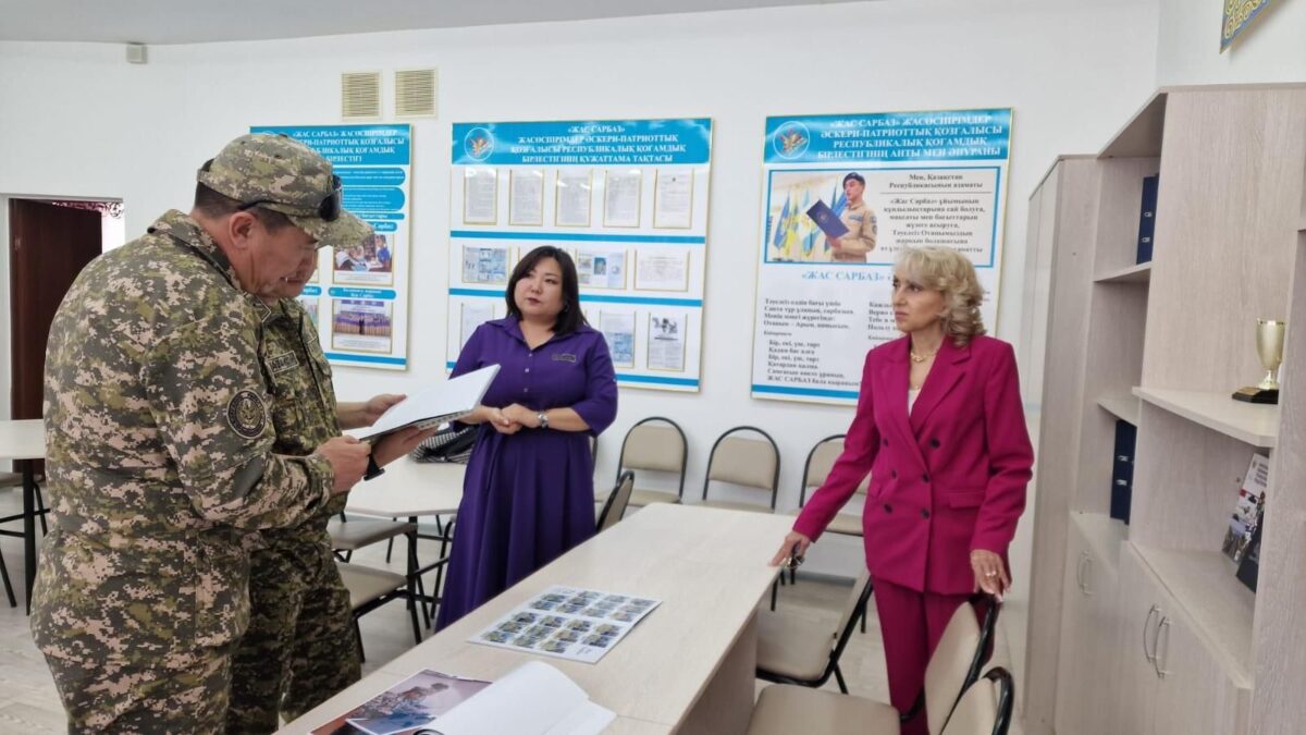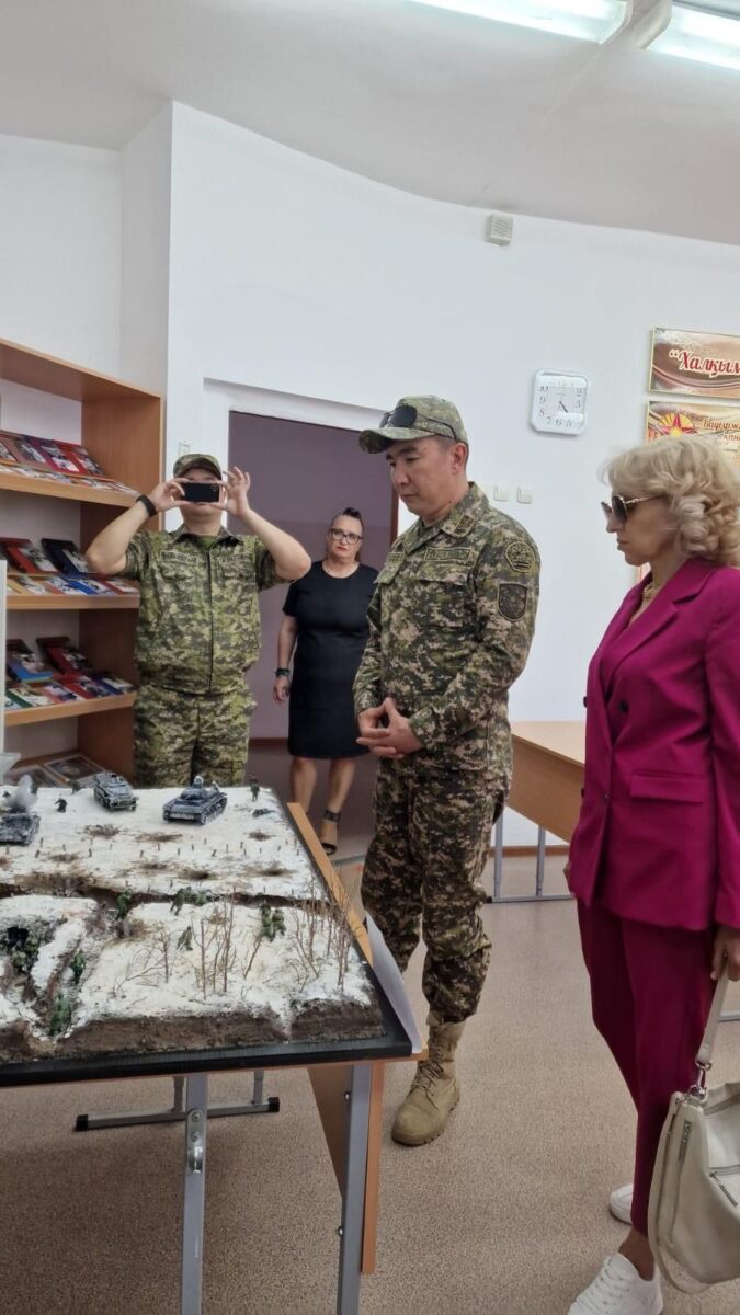 Соңында Жанар Козыбаевна қонақтарға білім кадет оқушылардың қолымен салынған ашық аспан астындағы әскери техника мұражайын көрсетті.