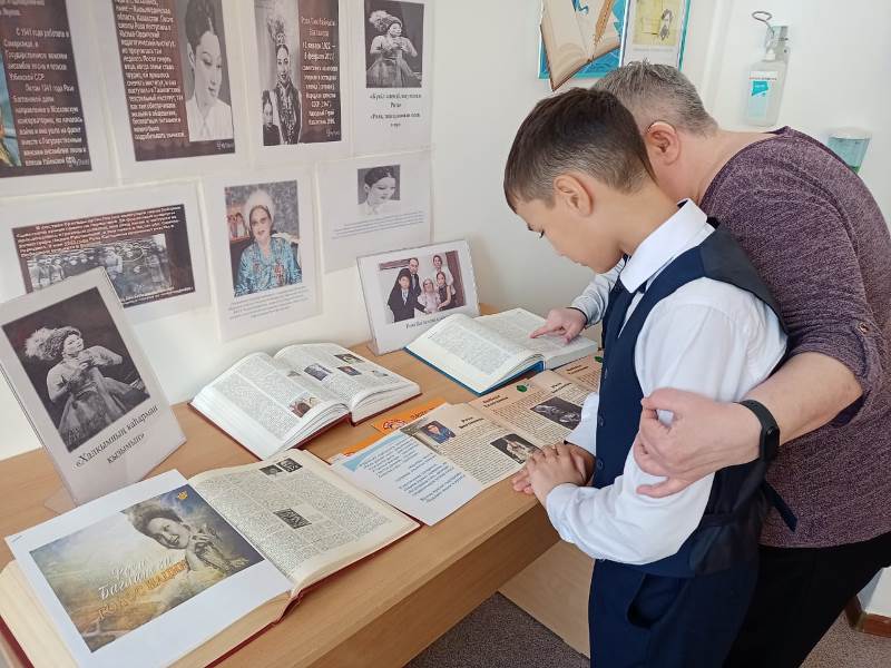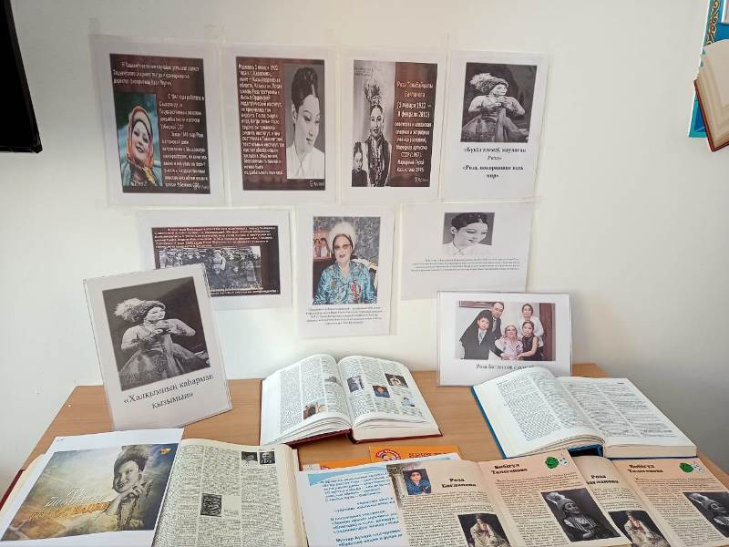 Кітапханашылар Қабдуллина У.А. Бибикова Н.Н. опера және эстрада әншісі, сопрано, қазақ халық әндері мен әлем халықтарының әндерін орындаушысы Роза Бағланова, Халық Қаһармананың 100 жылдығына арналған «Халқымның қаһарман қызымын» атты кітап көрмесі ұйымдастырылды.