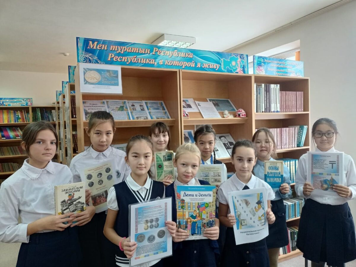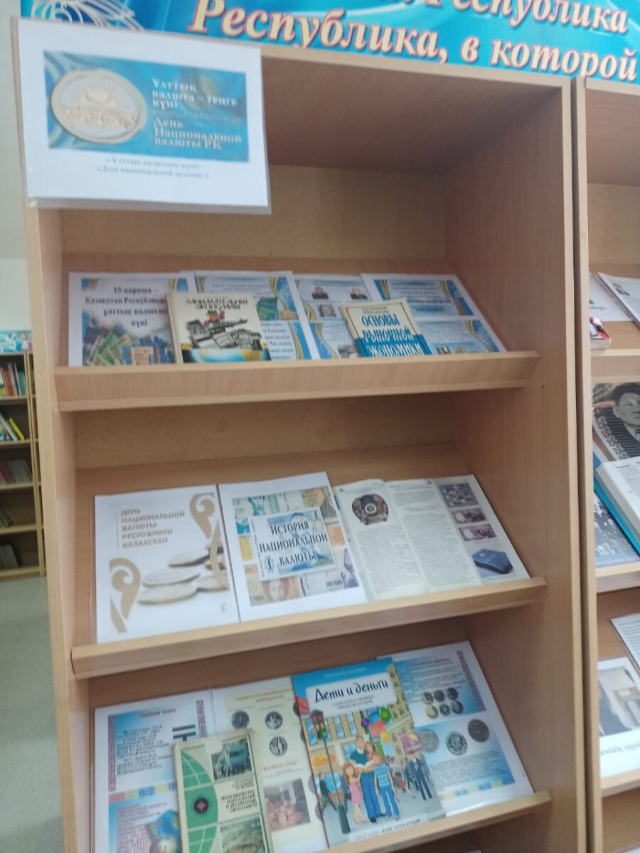 Ұлттық валюта күніне орай «Ұлттық валюта күні» атты кітап көрмесі ұйымдастырылды. Кітапханашылар Қабдуллина У.А., Бибикова Н.Н. 5-7 сынып оқушыларына Қазақстандағы теңгенің пайда болуы және айналымға ену тарихы туралы айтып берді, Қазақстанның ұлы тұлғаларына арналған естеліктер мен монеталар, басқа елдердің монеталары және банкноттарымен таныстырды. 5 «Г» оқушыларымен «Ұлттық валютаның өткені мен қазіргісі» туралы викторинасы өткізді. Кітапханаға 30 оқушы келді.