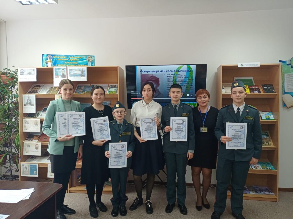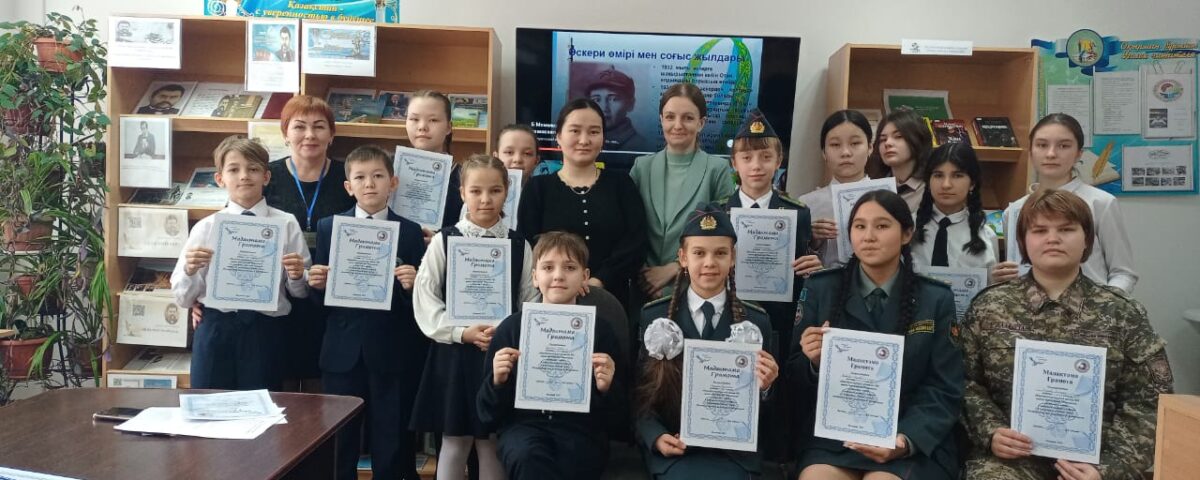 19 желтоқсанда кітапханада Бауыржан Момышұлының шығармалары бойынша оқырмандар байқауы өтіп, “Қазақ батырлары”атты кітап көрмесі ұйымдастырылды. Іс-шараға 5-10 сыныптардың 15 оқушысы қатысты. Қатысушылар “Жас оқырман”, “Жас автор” атты екі номинация бойынша бақ сынасты.