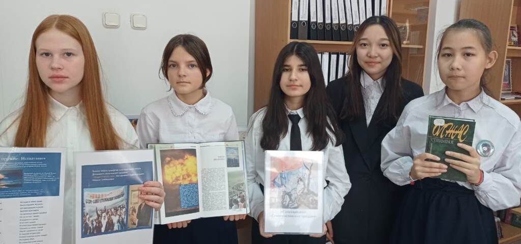 Көрме “Невада-Семей” қозғалысымен және оның көшбасшысы ақын Олжас Сүлейменовпен таныстырады. Полигон құрбандарын еске алу үшін кітапхана оқырмандары Махметов Даян, Веселкова Яна, Сыздықова Камила, Гумбатов Самир, Астапова Анастасия 7 “Е” сынып оқушылары “Семей” өлеңін оқып, Руднев Ильяның орындауында “Тепен көк” күйі шырқалды. 15 оқушы қатысты.