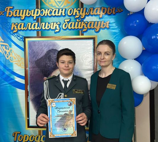 2 орын – Ксумбаева Камила, Хлюпко Назар. Жетекшісі: Бондарева Ольга Викторовна.