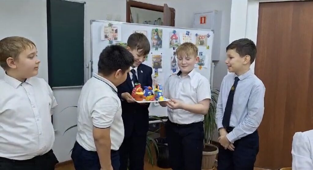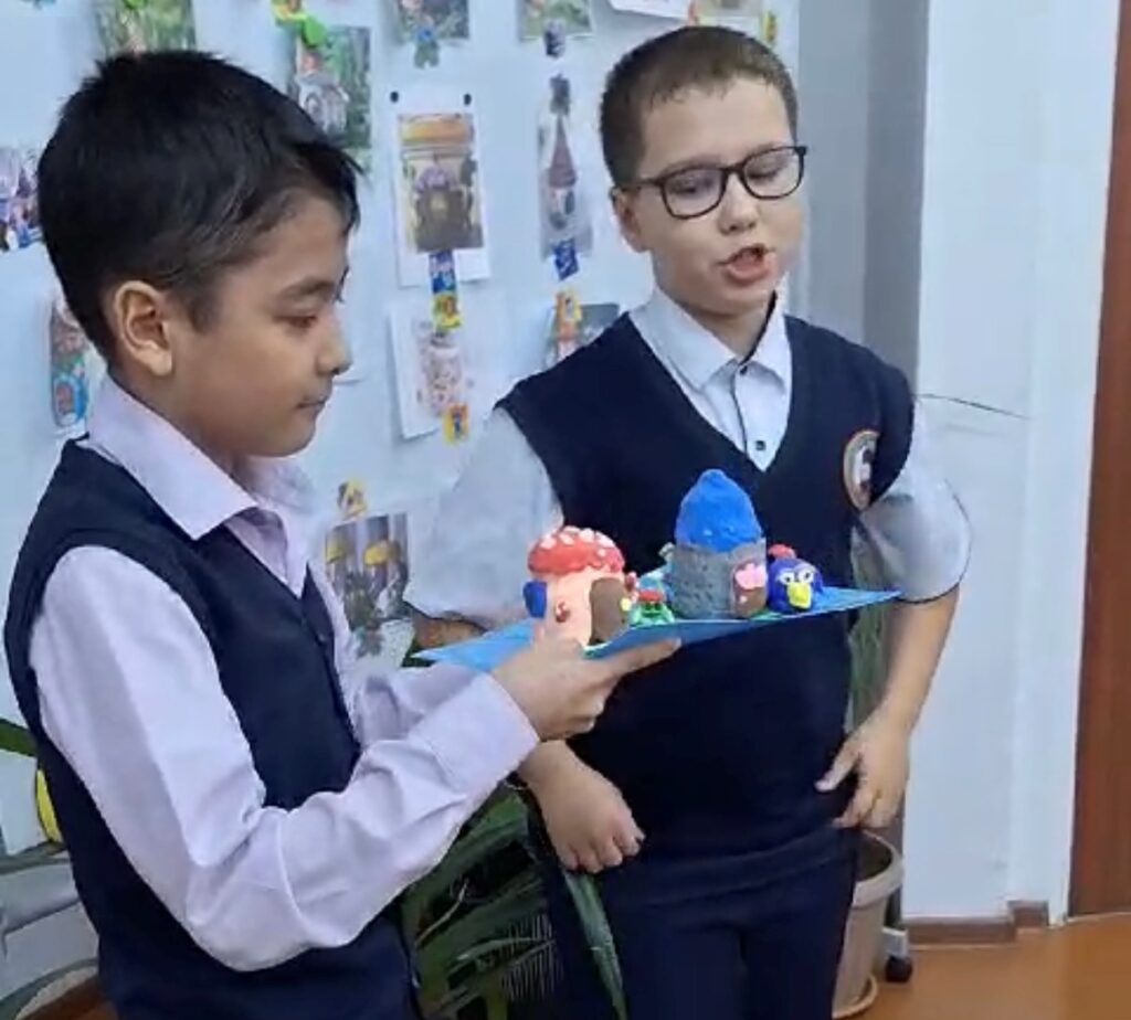 Білім алушылар өз жұмыстарын ауа пластилинінен өз бетінше қорғады. Әңгімелер ойлап тауып, өз жұмысын сипаттай отырып, ата-аналарға, олар өз кезегінде әр оқиғаны жүрегінде қалдырды.