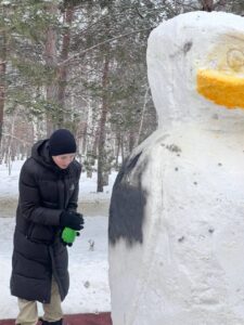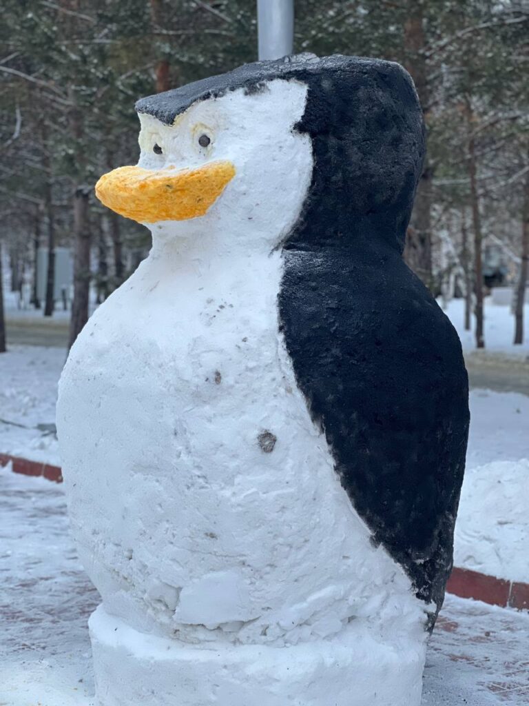 Қар мүсіні болып “Мадагаскар” мультфильміндегі танымал кейіпкер Пингвин Шкипер таңдалды.