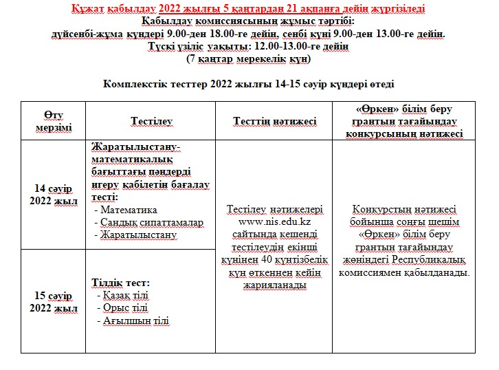 «Назарбаев Зияткерлік мектептері» дербес білім беру ұйымы 2022-2023 оқу жылында Назарбаев Зияткерлік мектептерінің 7-сыныптарында білім алу үшін үміткерлерге Қазақстан Республикасы Тұңғыш Президенті – Елбасының «Өркен» білім беру […]